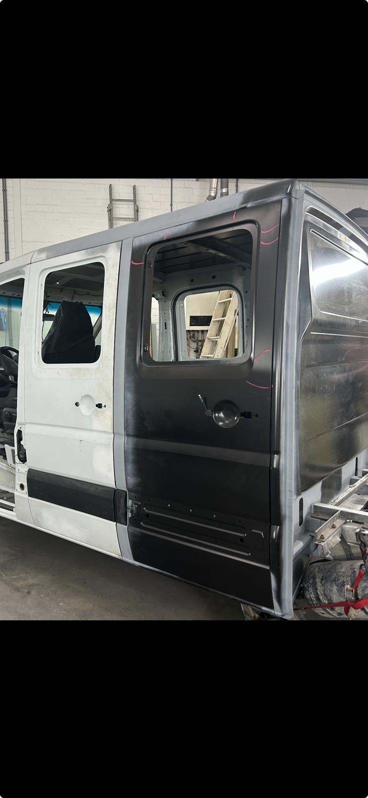 De klant wilde een extra dubbele cabine voor zijn bus en wij hoefden alleen het plaatwerk te doen.